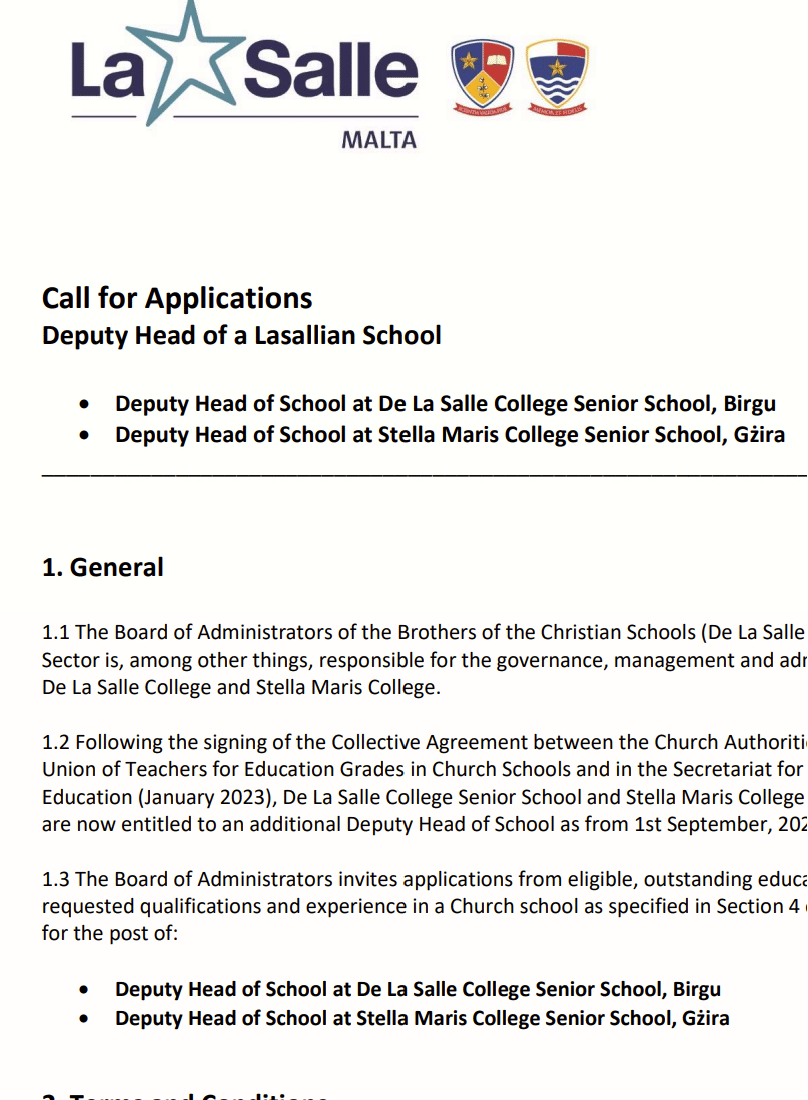 De La Salle Sixth Form is a Roman Catholic Sixth Form College committed to the personal and spiritual growth of all its members based on Christian values, academic excellence and high quality pastoral care. The College is run by the International De La Salle Order which was founded in France by St John Baptist De La Salle in 1684 and which was subsequently established in Malta in 1903.