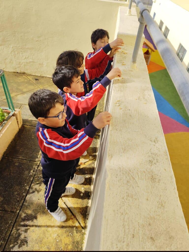To conclude the lesson, they prepared biscuit crumbs to feed the birds, showing care and kindness towards nature.