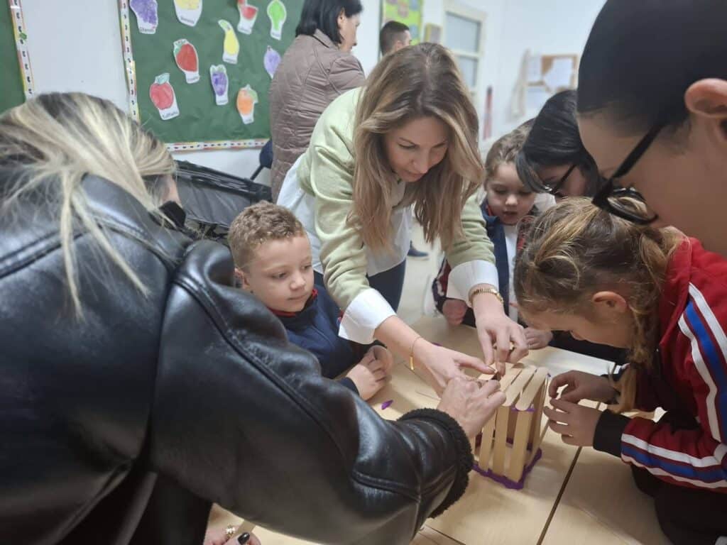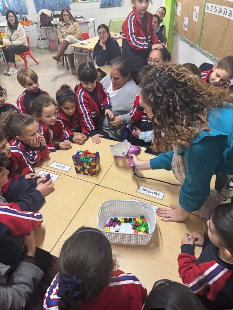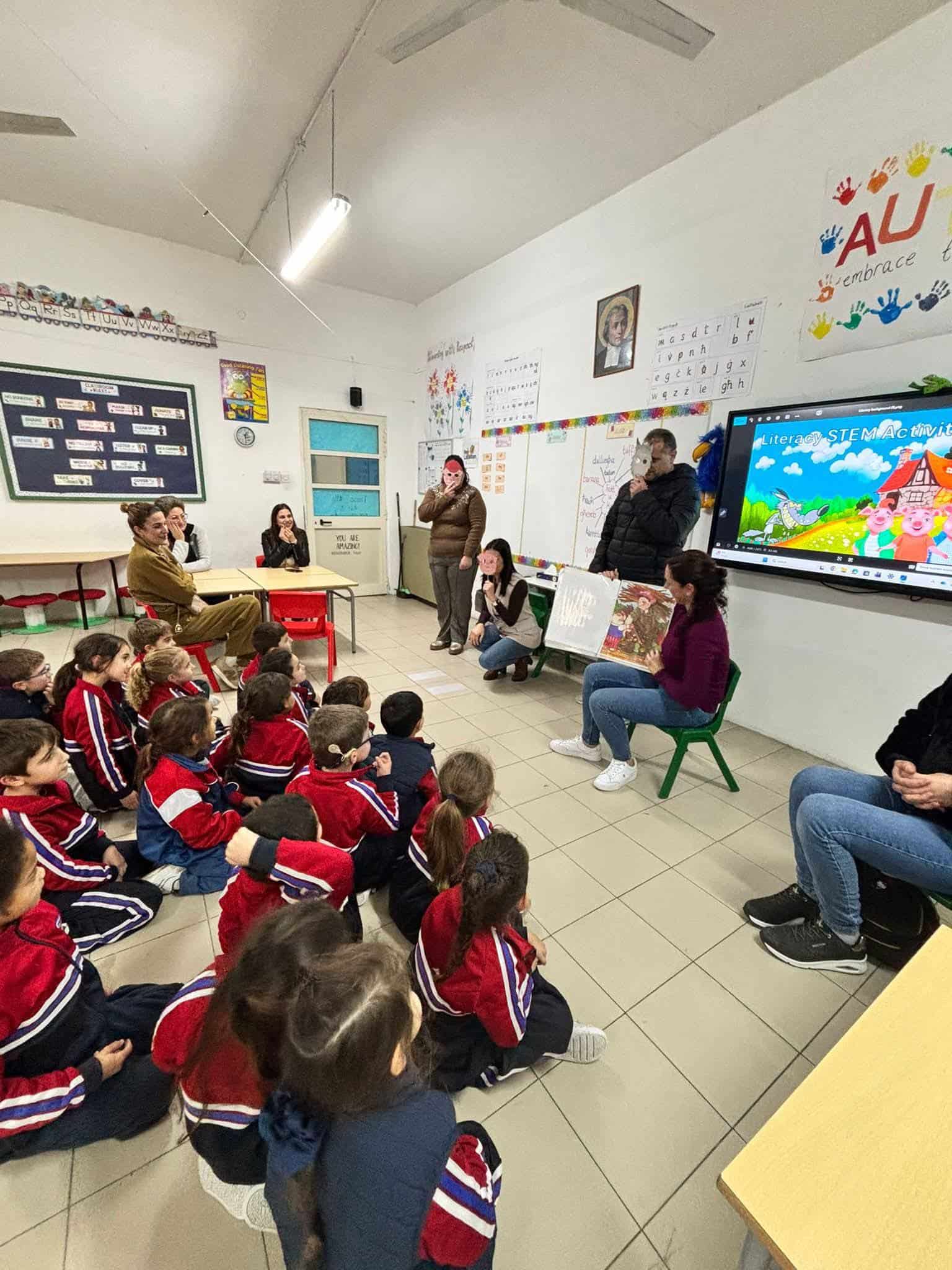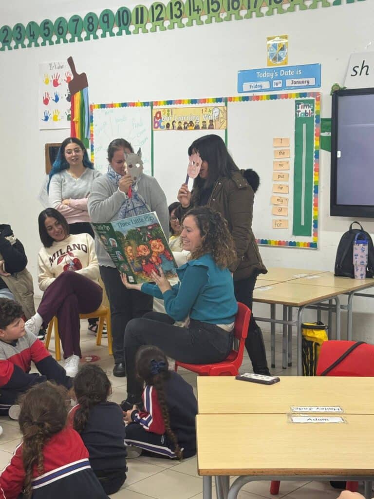 The teacher animated the story of the 3 little pigs with help from the parents and after the children built the 3 houses of straw, sticks and bricks using different materials that represented the ones mentioned in the story.