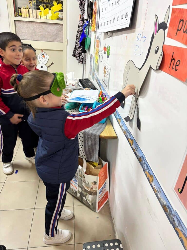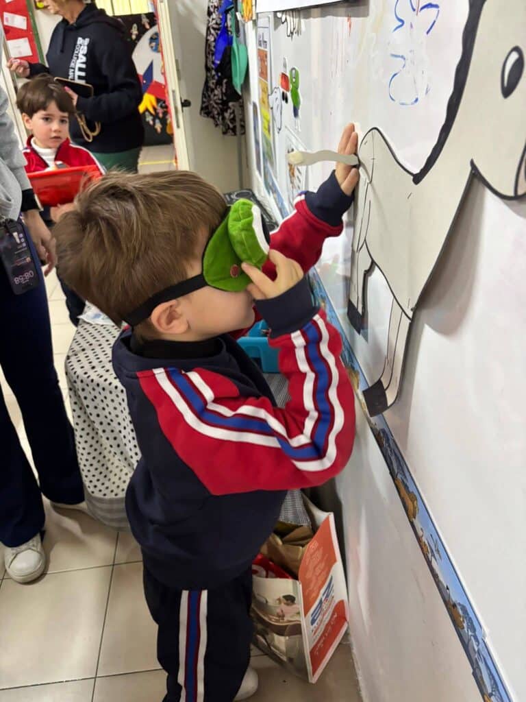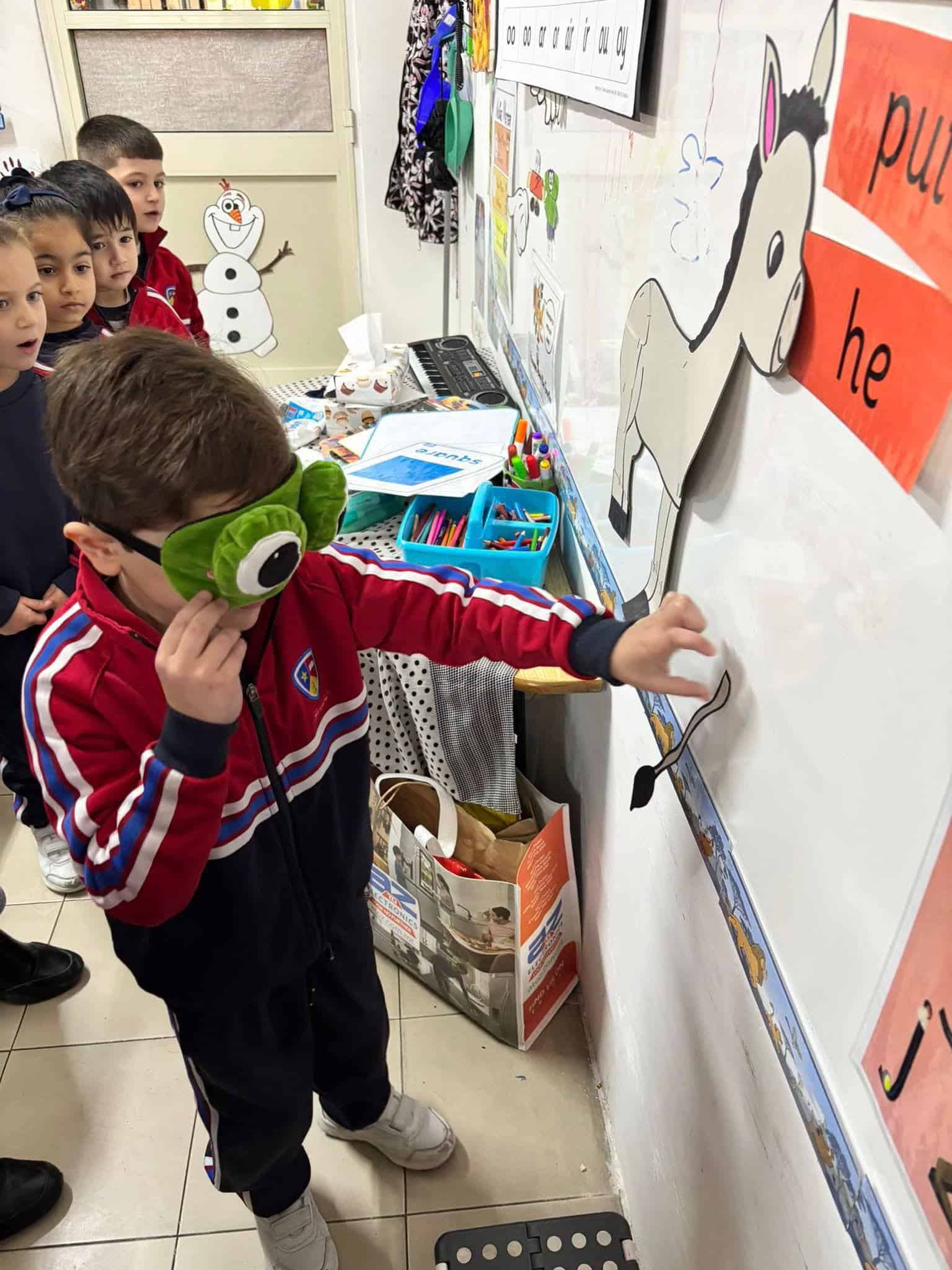 During Literacy, we enjoyed reading the Red Book Pin It On. We talked about our favourite party games and joined in with our own version of Pin the Tail on the Donkey.