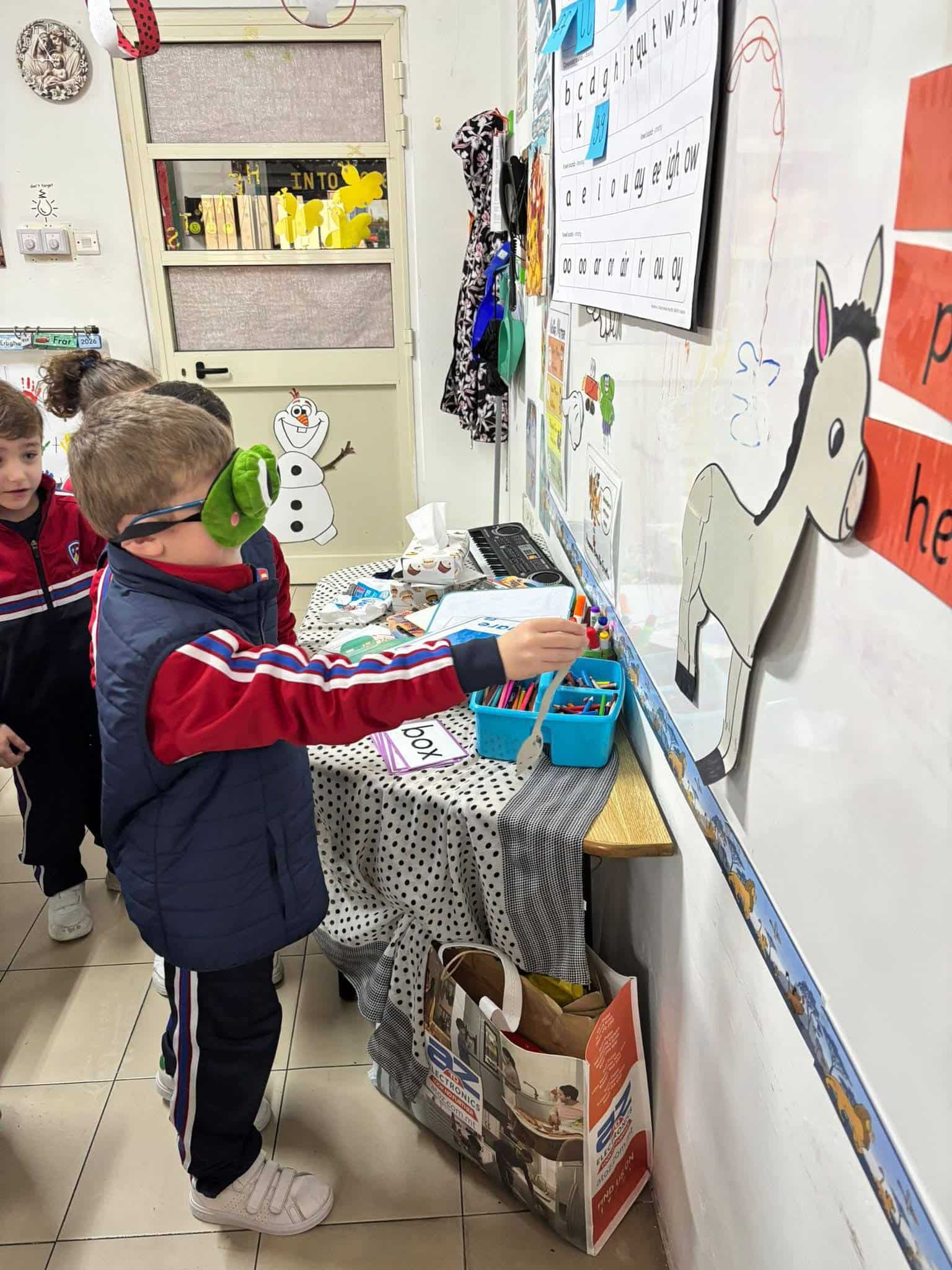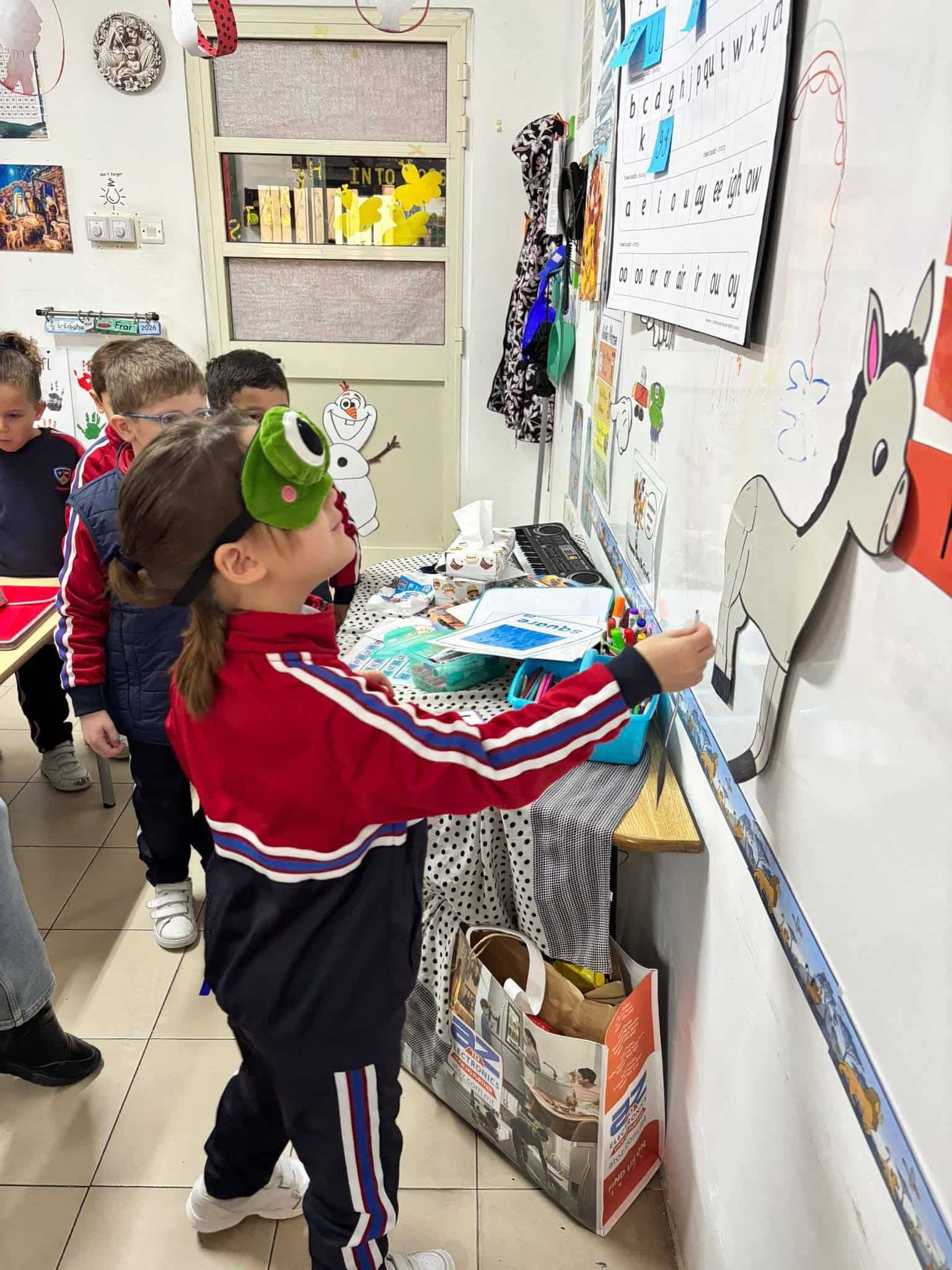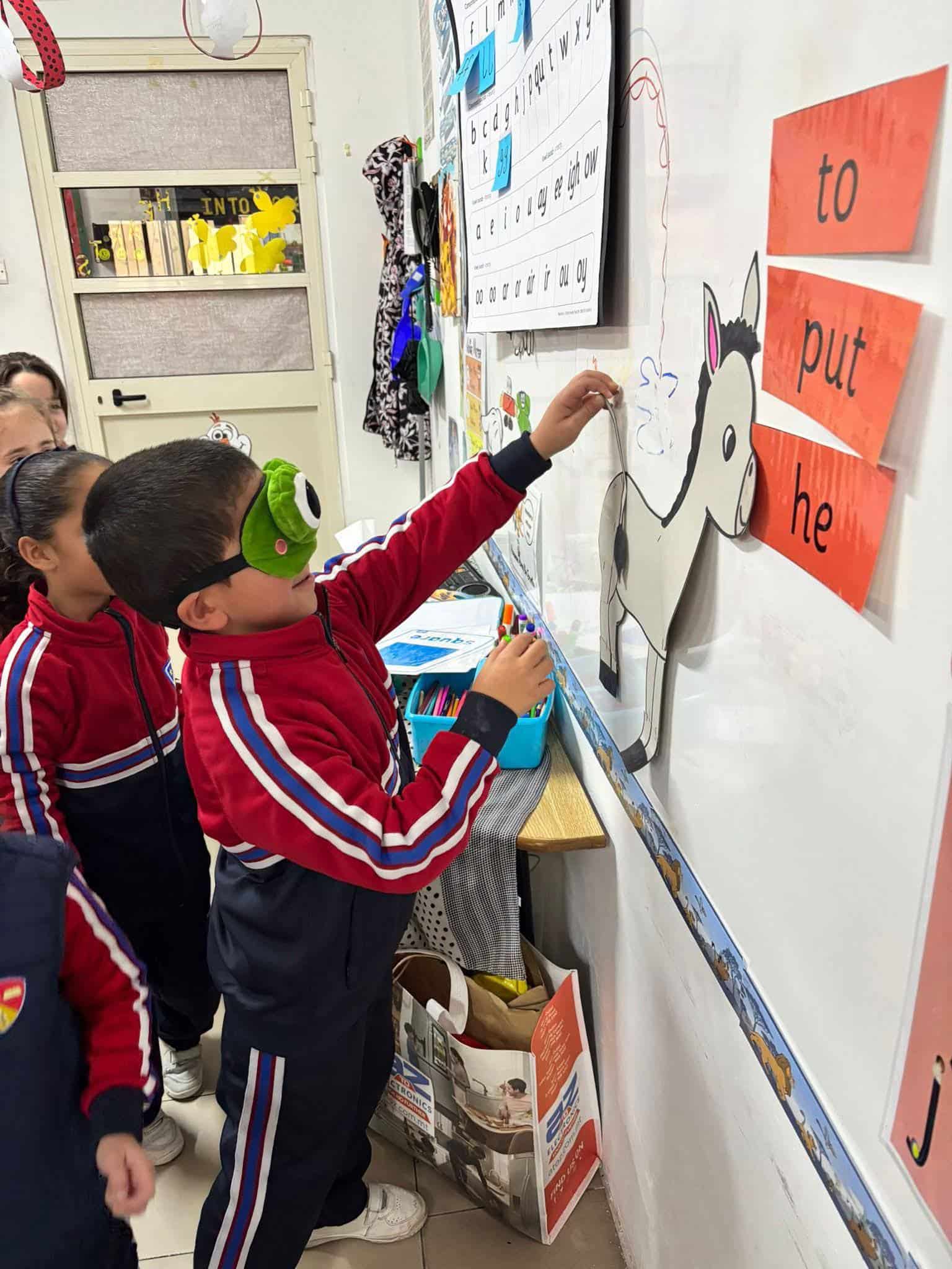 During Literacy, we enjoyed reading the Red Book Pin It On. We talked about our favourite party games and joined in with our own version of Pin the Tail on the Donkey.