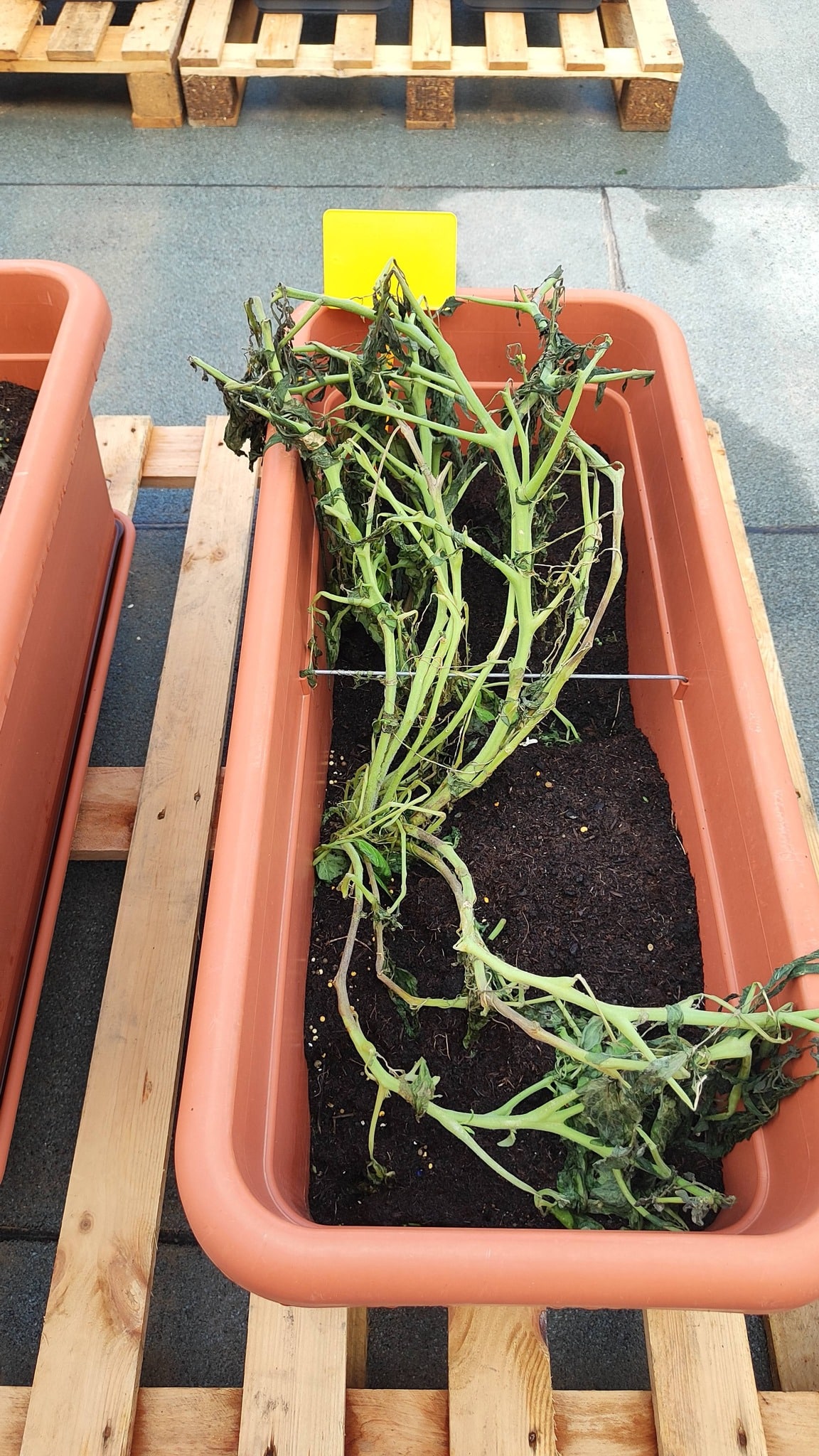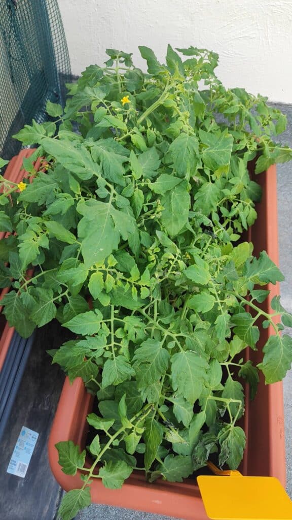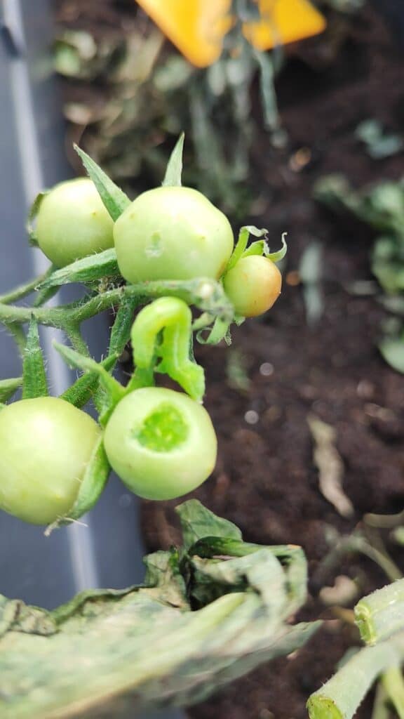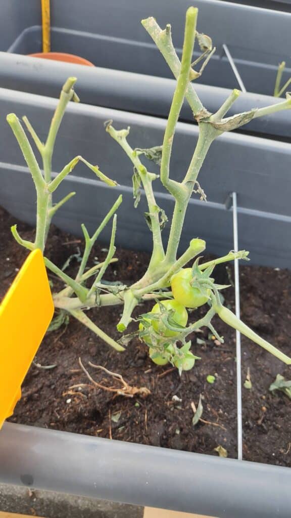 Before and after the storm - unfortunately our tomatoes took a battering from the strong wind. We have trimmed down the broken and dead parts in hope of new growth. One positive discovery, a very hungry caterpillar enjoying a nice meal!