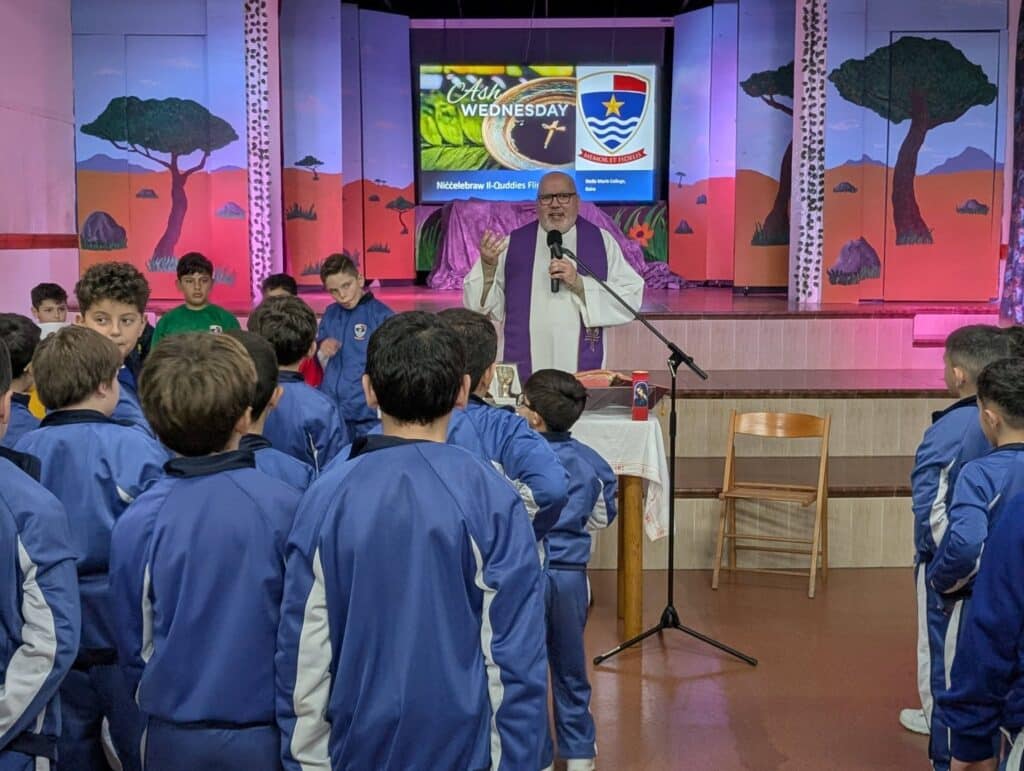 Today, our school community came together to remember Ash Wednesday, the beginning of Lent. It was a meaningful moment for reflection, prayer, and preparing our hearts to walk in love and kindness in the weeks ahead. Masses were celebrated by Fr Anthony Fitzpatrick and animated by Mr David Portelli, lay school chaplain.