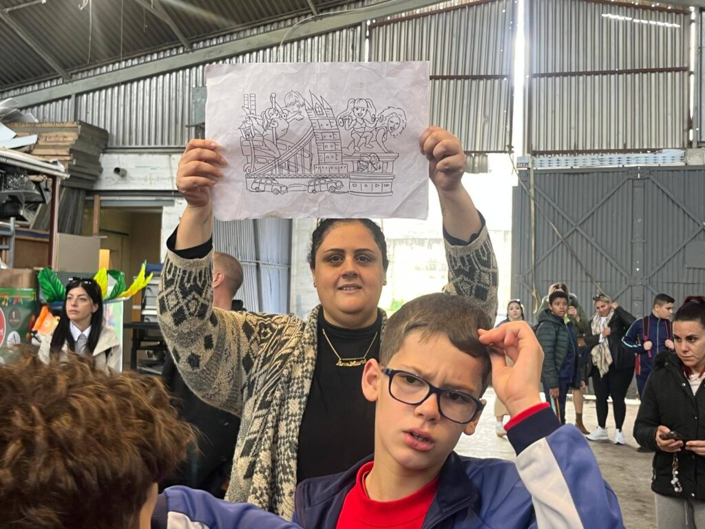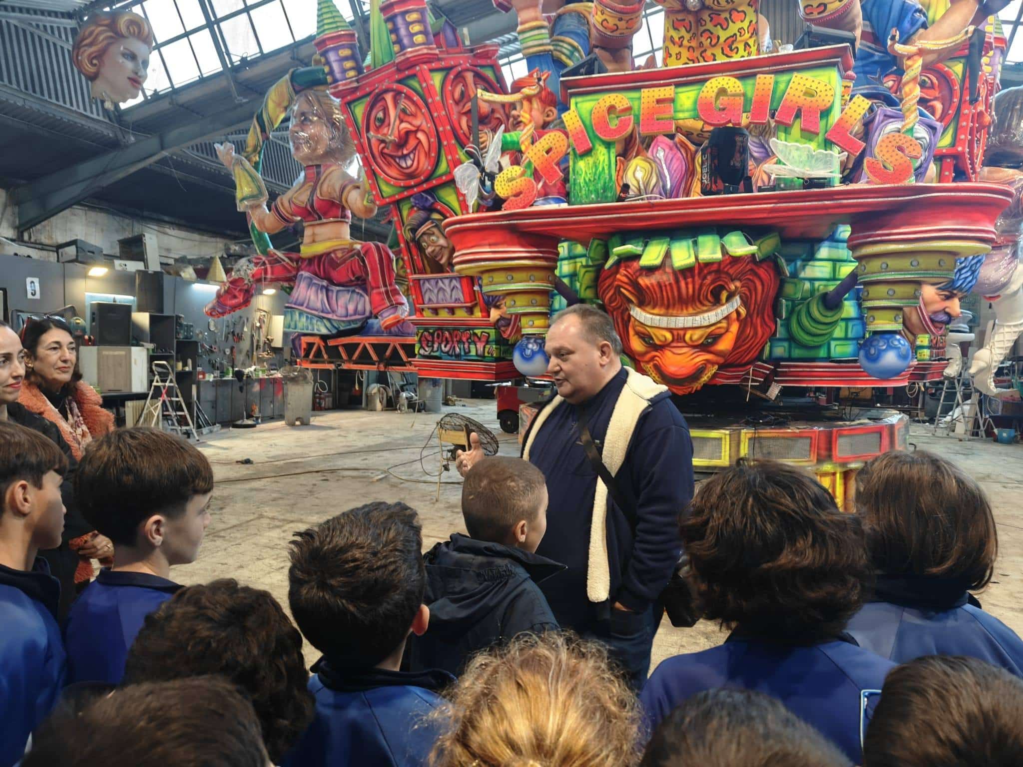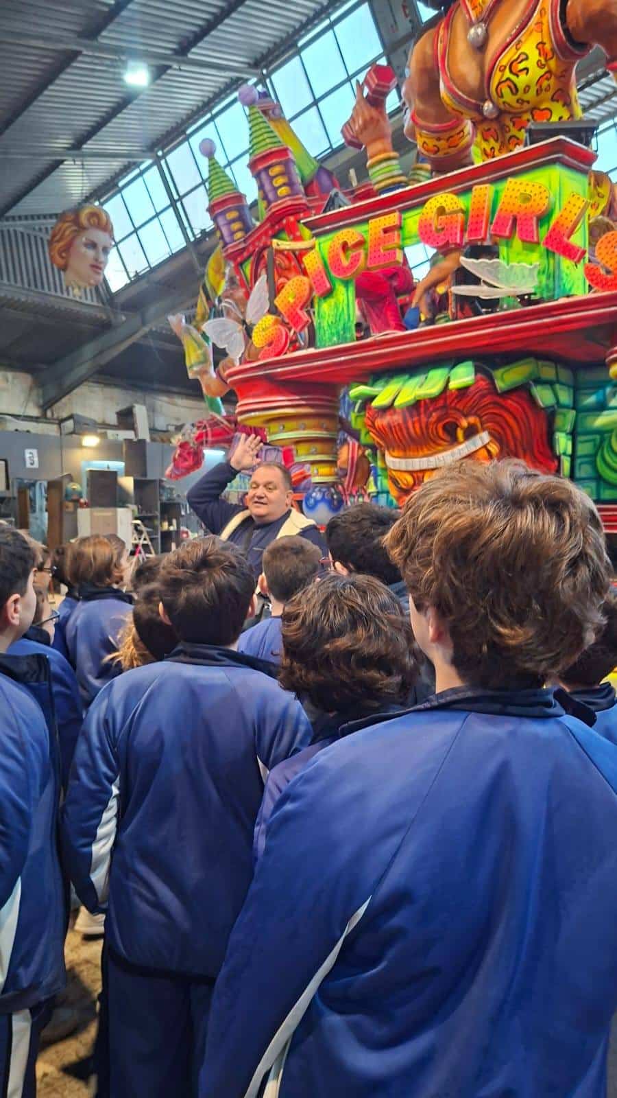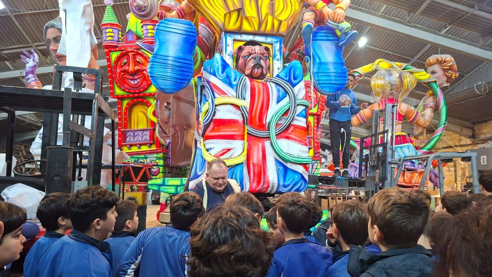 Outdoor lesson at the Warehouse of Toto Perżuta Carnival Company, learning about the building and decorating one of this year's carnival floats.
