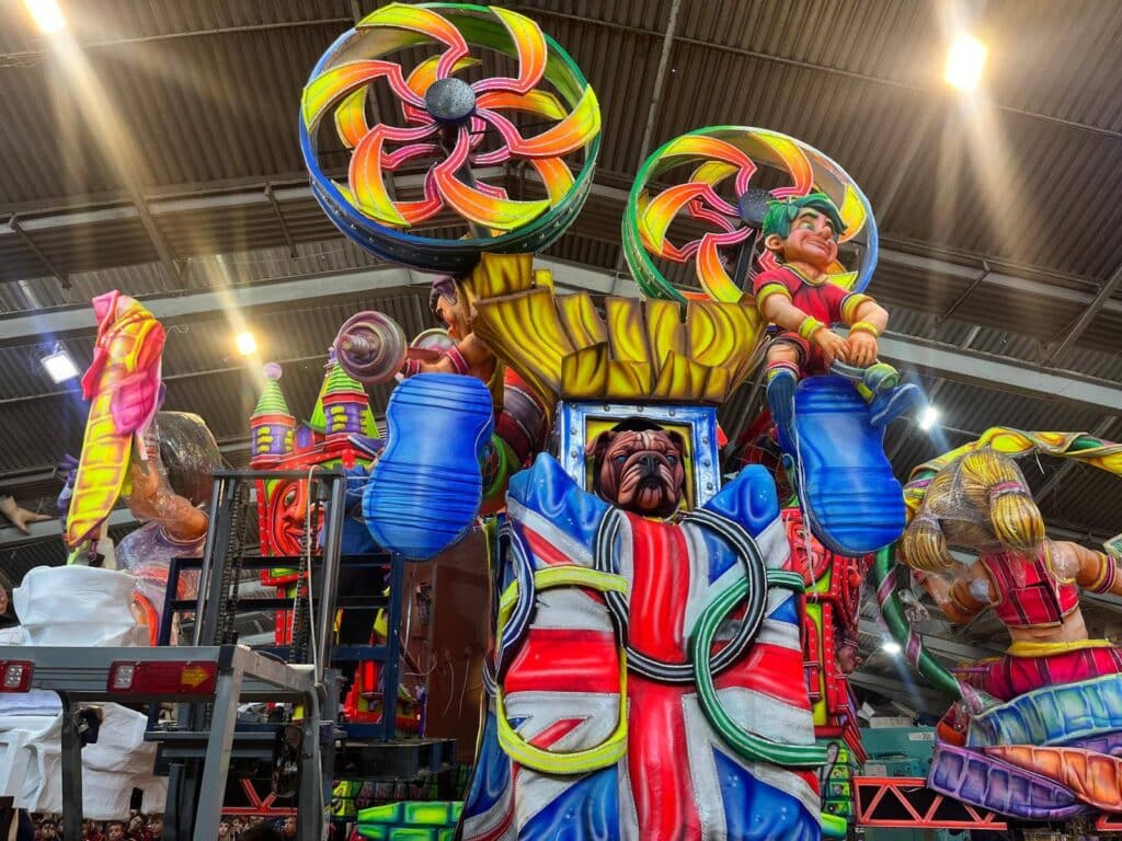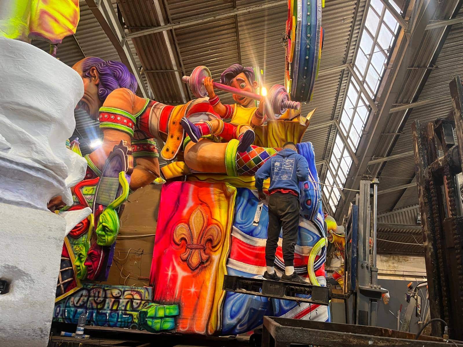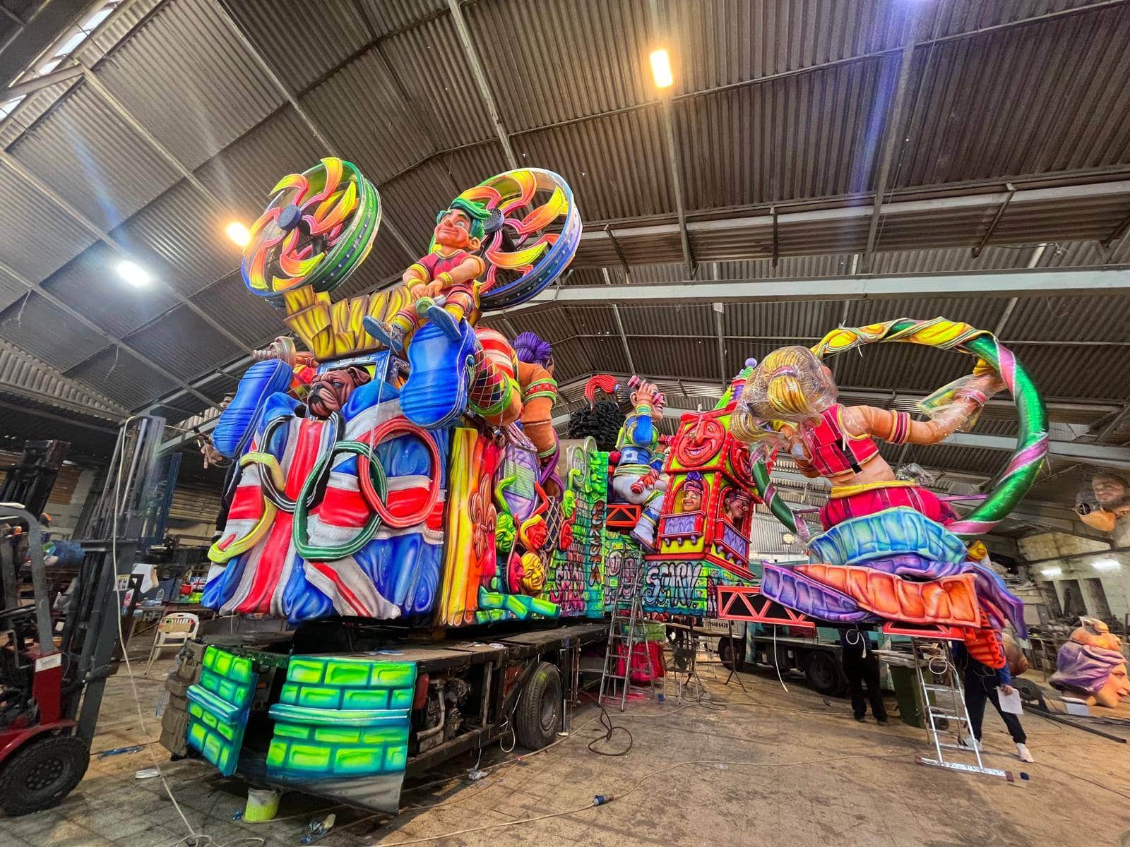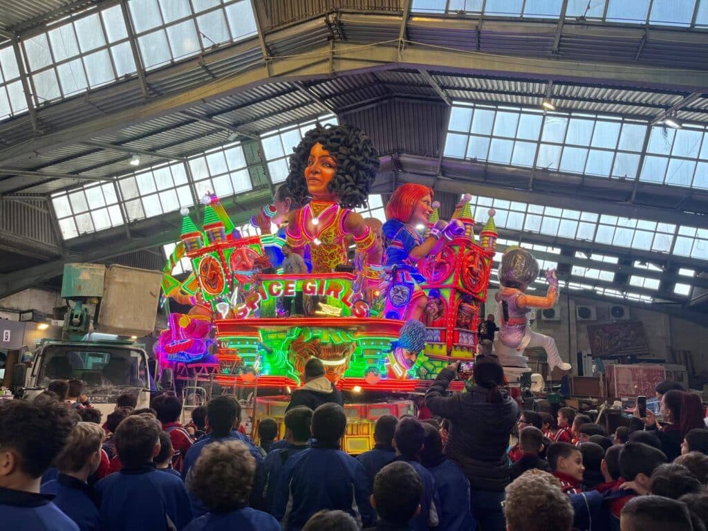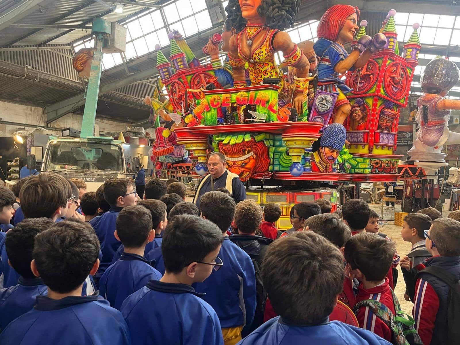 Outdoor lesson at the Warehouse of Toto Perżuta Carnival Company, learning about the building and decorating one of this year's carnival floats.