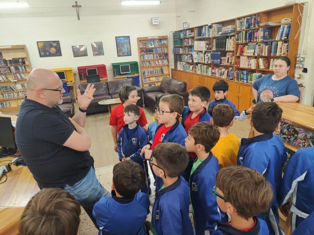 During a Maltese reading lesson, Grade 3 Benjamin's students went to the senior school library and met with Mr Paul Abdilla, the librarian. He gave a detailed description of the various sections of the library, the layout and how libraries are organised. Students were very eager to learn about the vast variety of books.